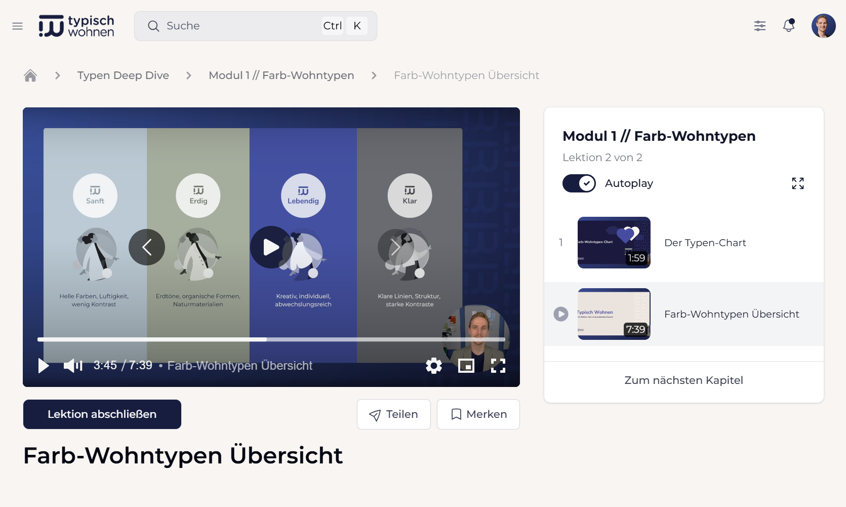 Im Onlinekurs erfährst du alles zu den Farb-Wohntypen, damit du ganz einfach selbst typgerecht gestalten und wohnen kannst.