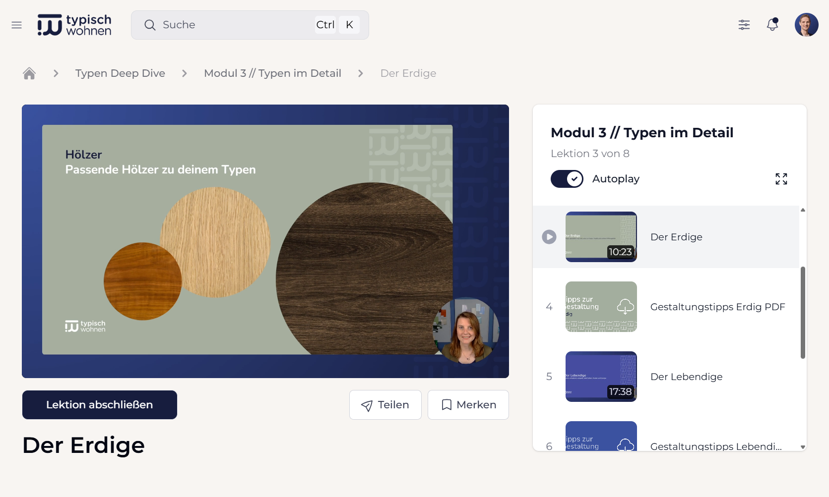 Der Typen Deep Dive ist ein Onlinekurs, in dem wir in der Tiefe darauf eingehen, welche Farben, Materialien, Formen, Einrichtungsgegenstände und mehr zu den vier Farb-Wohntypen passen. Dadurch erhältst du eine tiefgehende Orientierung für die Gestaltung deiner Räume und zwar so, dass sie wirklich zu dir passen.